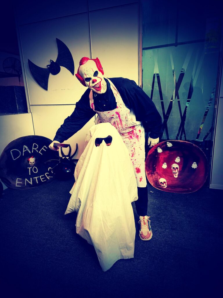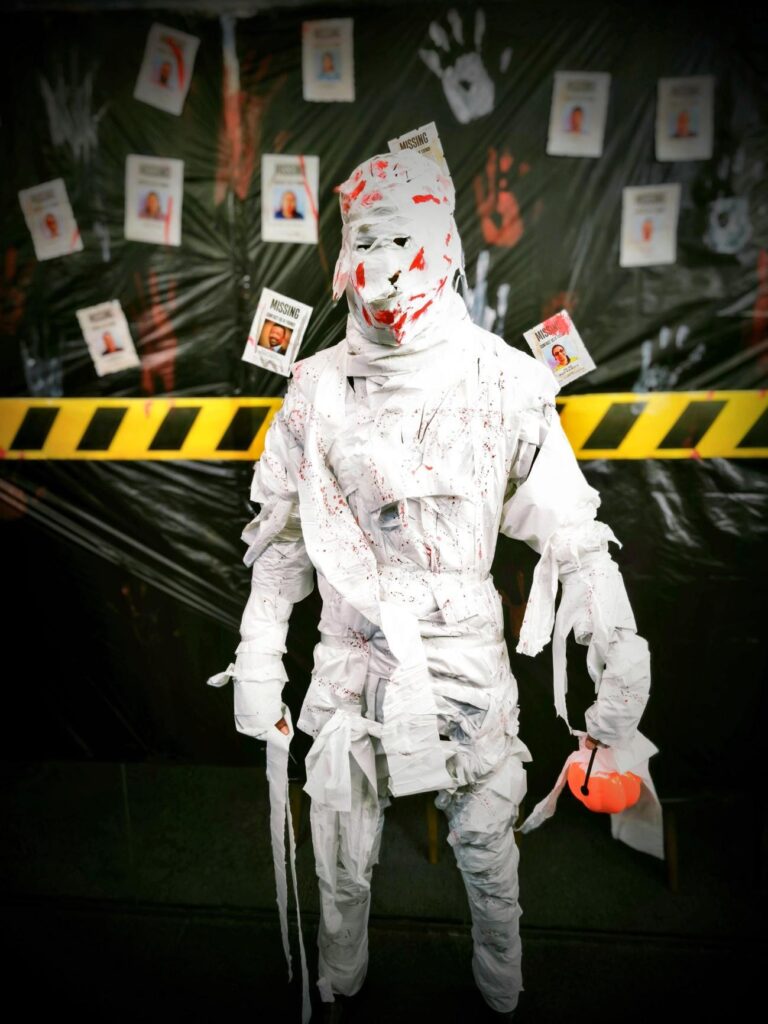That’s exactly what happened today at Mynott Bowers Offices as staff enjoyed celebrating Halloween. Staff were invited to celebrate Halloween this year by wearing their scariest costumes. Some individuals decorated their works stations, and the offices were transformed overnight ready for the doors to open this morning.